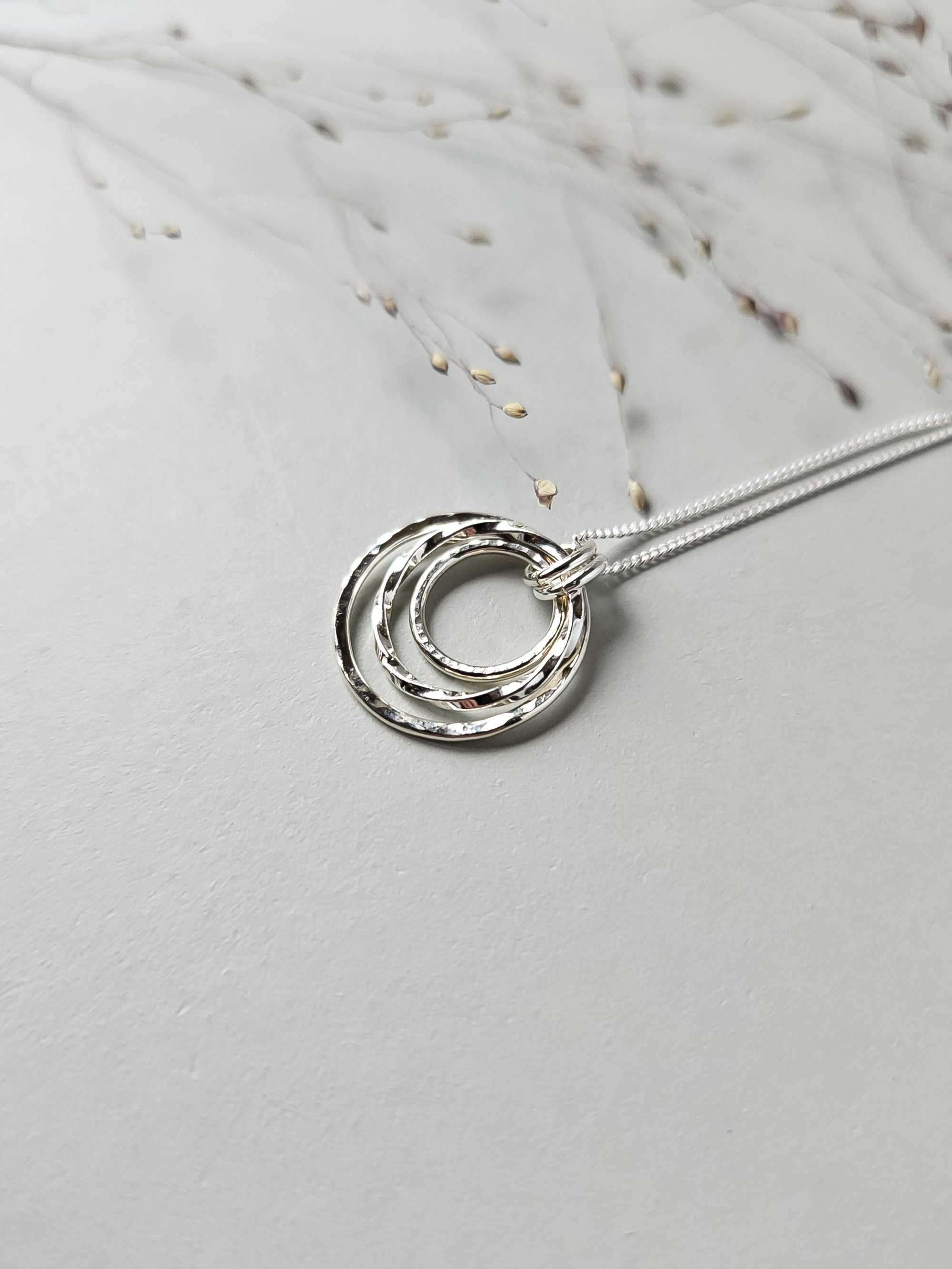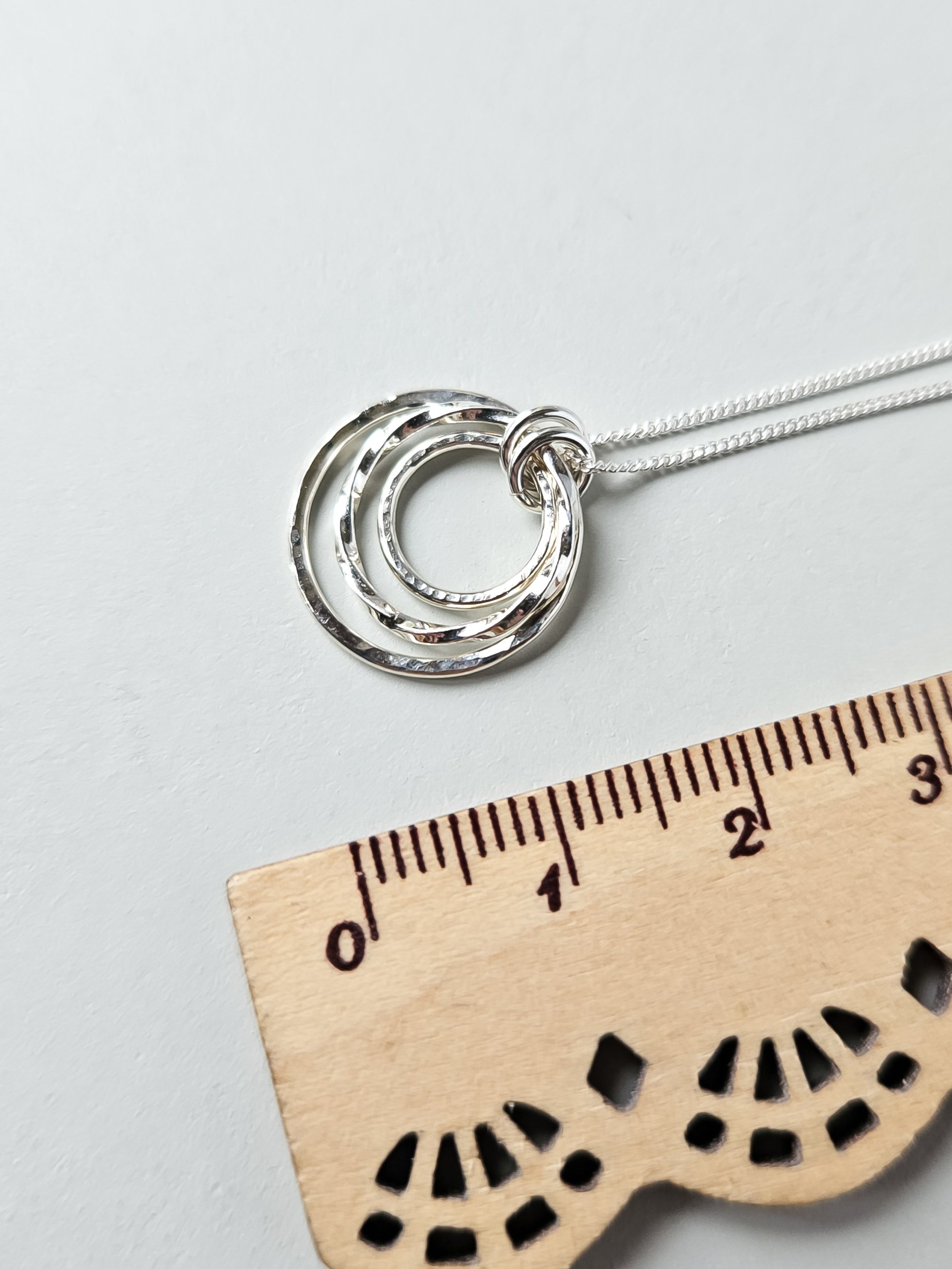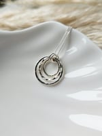 A beautiful sterling silver hammered open 3 circle pendant necklace